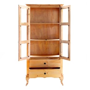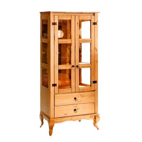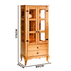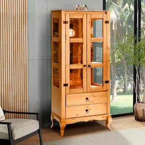 Cristaleira Madeira Maciça Retrô 2 Portas Vidro Lateral Marrom Claro D112VL Shop JM