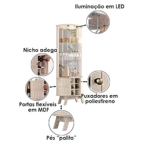 Começou a montar sua sala? Então apresentamos para você esta bela Cristaleira da linha Marina, uma peça elegante e funcional que combina beleza e praticidade. O destaque fica por conta da iluminação LED, adicionando um toque de sofisticação destacando seus itens. Possuindo 2 prateleiras em vidro oferece um amplo espaço para exibir seus objetos favoritos. Além disso, conta com 6 nichos especialmente projetados para acomodar garrafas de vinhos ou outras bebidas, sendo perfeita para amantes de vinhos ou para quem gosta de entreter. Sua combinação com as 2 portas e laterais em vidro dão estilo, ao mesmo tempo mantendo seus acessórios protegidos. Contando ainda com 2 portas curvas em MDF, para que você possa guardar e manter tudo organizado em seu ambiente. Produzido pela Madetec, é feito em MDP com materiais de alta qualidade garantindo uma maior durabilidade para seu móvel. Com um design elegante e contemporâneo, é a excelente escolha para quem busca funcionalidade e estilo em um único móvel. Confira e garanta o seu!