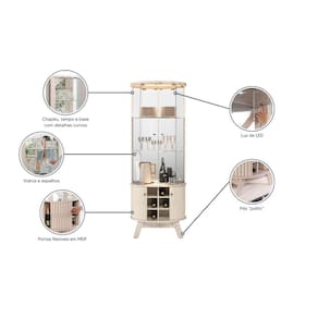 Cristaleira Marina Cinamomo e Off White com 4 Portas de Vidro 3 Espelhos LED e Prateleiras de Vidro Liberty Móveis - Cinamomo | Off White
