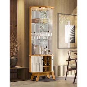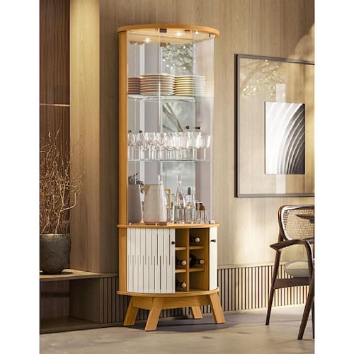 Cristaleira Marina Com Espelho e Luminária de Led nas Prateleiras Cinamomo Off White Madetec - Marrom