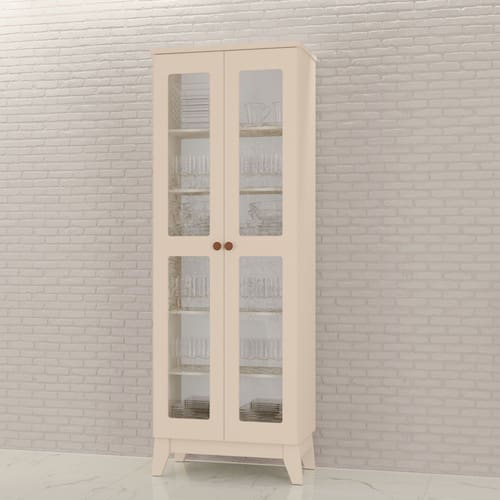 O móvel conta com duas portas em vidro transparente, o que garante uma visibilidade ampla e clara dos objetos guardados na cristaleira. A ampla divisão interna permite organizar louças, copos, taças e outros objetos de forma prática e organizada.