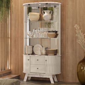O(a) Cristaleira Moss 4 Portas 2 Gavetas com Vidro e Espelho Calacata/Off White - Madetec é produzido em MDP na escala de brilho Semi-Brilho, e possui um grau de dificuldade de montagem: Médio.