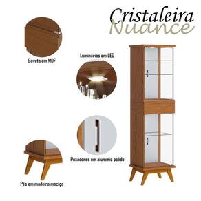 A cristaleira da linha Nuance combina elegância e funcionalidade, apresentando duas portas em vidro são perfeitas para destacar seus cristais e louças. Três prateleiras em vidro oferecem amplo espaço para exibir seus objetos de forma organizada e acessível. Possui um espelho que dá uma sensação de profundidade ao ambiente. As duas luminárias em LED proporcionam uma iluminação suave. Além disso, é equipada com uma gaveta espaçosa, perfeita para guardar seus utensílios. Seus pés em madeira maciça entregam mais estabilidade. Produzido pela Imcal, são desenvolvidos em MDP/ MDF com materiais de alta qualidade entregando mais durabilidade. Com um design moderno e sofisticado será a escolha elegante, dando um toque de sofisticação e organização para sua casa. Confira e garanta o seu!