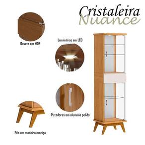 A cristaleira da linha Nuance combina elegância e funcionalidade, apresentando duas portas em vidro são perfeitas para destacar seus cristais e louças. Três prateleiras em vidro oferecem amplo espaço para exibir seus objetos de forma organizada e acessível. Possui um espelho que dá uma sensação de profundidade ao ambiente. As duas luminárias em LED proporcionam uma iluminação suave. Além disso, é equipada com uma gaveta espaçosa, perfeita para guardar seus utensílios. Seus pés em madeira maciça entregam mais estabilidade. Produzido pela Imcal, são desenvolvidos em MDP/ MDF com materiais de alta qualidade entregando mais durabilidade. Com um design moderno e sofisticado será a escolha elegante, dando um toque de sofisticação e organização para sua casa. Confira e garanta o seu!