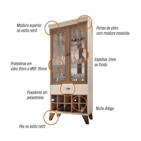 MDFEsta elegante cristaleira é o complemento perfeito para qualquer sala de jantar. Com espaço para armazenamento, este móvel é tanto funcional quanto sofisticado, adicionando um toque de luxo à sua casa. Ideal para exibir sua coleção e manter tudo organizado, este armário é uma escolha elegante para os amantes de vinho e entusiastas de decoração de interiores.