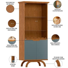 Já os pés curvos em MDF de 25mm adicionam um charme único a esta cristaleira moderna, enquanto o espaço interno da adega pode acomodar até 6 garrafas, mantendo-as perfeitamente organizadas e prontas para serem apreciadas. Além disso, a versatilidade é expressa nas prateleiras de vidro, que oferecem espaço adicional para armazenar seus utensílios de bar, taças e outros acessórios essenciais.