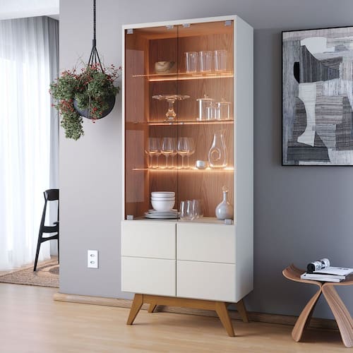 Com um design moderno e sofisticado, a Cristaleira Noronha destaca-se por seus pés em madeira maciça de alta qualidade. Ela oferece amplo espaço interno, com duas portas de madeira com detalhes chanfrados, além de duas portas de vidro temperado com puxadores de alumínio dourado. Possui três prateleiras de vidro, perfeitas para exibir louças e taças, que contam com iluminação de Led, tornando o ambiente ainda mais aconchegante e sofisticado. CARACTERÍSTICAS TÉCNICAS: - Produzido em MDP de 15 e 25mm, MDF de 15 e 25mm e HDF 3mm - Acabamento Fosco com Pintura UV - 2 Portas com Dobradiça Metálica e Detalhes Chanfrado - 2 Portas com Vidro Temperado com puxadores em aluminio dourado - 3 Prateleiras Internas em Vidro - Iluminação de em Fita Led Bivolt - Sistema de Abertura com Fecho Toque - Pés em Madeira Maciça com 20cm de Altura - Peso Suportado no Tampo de 5kg - Peso Suportado por Prateleira de 3kg - Possui 4 Portas e 3 Prateleiras INFORMAÇÕES TÉCNICAS: Altura: 182,9cm Largura: 71,6cm Profundidade: 40,9cm Peso: 60kg ITENS INCLUSO: - Cristaleira - Manual de Montagem - Kit de Ferragens INFORMAÇÕES ADICIONAIS: - Não realizamos a montagem do móvel e não nos responsabilizamos por ela. Verifique o produto antes de montá-lo. Produtos danificados na montagem não serão trocados. Montagem e instalação são por conta do comprador. - As imagens decorativas são ilustrativas e podem conter itens não inclusos. As cores do produto podem variar conforme o monitor, iluminação ou percepção visual. - Limpeza: Use um pano macio e seco ou levemente umedecido com água. Não utilize materiais abrasivos como palha de aço ou objetos cortantes. - Garantia de 3 meses contra defeitos de fabricação conforme o Código de Defesa do Consumidor.
