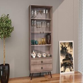 A cristaleira RT 3151 possui estrutura em MDP 15mm e acabamento em pintura UV. Costas 3mm. Possui 3 prateleiras que suportam 5kg cada, 2 portas de bater de vidro 4mm, dobradiças metálicas e puxadores ponto plásticos e 2 gavetas com corrediças metálicas, puxadores ponto em plástico e que suportam 5kg cada. Possui 5 pés plásticos com altura de 20cm. Produto suporta até 30kg. Conteúdo da embalagem: móvel, ferragens e manual de montagem. A fixação das peças e/ou acessórios é feita por parafusos, cavilhas e minifix. Para uma limpeza mais efetiva, utilizar apenas pano macio umedecido e sabão neutro. Não utilizar produtos abrasivos. Garantia de 03 meses contra defeitos de fabricação. Medidas do produto (AxLxP): 173x80x38,5cm. Peso do produto: 47kg.