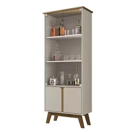 A Cristaleira Madri irá encantar você! Ela possui design retrô, e com certeza irá agregar muito mais charme e requinte ao seu ambiente. Conta com amplo espaço interno dividido por três prateleiras, que irá acomodar perfeitamente todas suas bebidas e taças. Portas de vidro 4mm e puxador de PVC Cromado. Portas inferiores com design curvo e dobradiças metálicas que complementam o charme do produto! Ela possui estrutura elaborada em MDP, tampo em MDF com bordas usinadas em ângulo e pés de madeira maciça, o que garante maior resistência e qualidade ao produto.