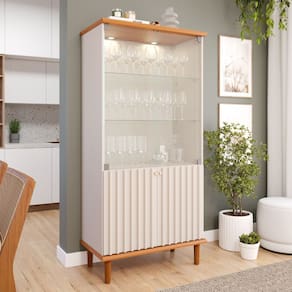 A Cristaleira Ripada Com LED e Vidro 4 Portas com Pés de Madeira Luiza Cimol A Cristaleira Ripada Com LED e Vidro 4 Portas com Pés de Madeira Luiza Cimol é uma peça que combina elegância e funcionalidade, perfeita para valorizar a decoração de qualquer ambiente. Com base em MDF e pés de madeira, oferece estabilidade e um toque natural. Suas portas possuem um design sofisticado detalhes ripados na parte inferior e vidro na parte superior, permitindo a exibição dos objetos com charme. As prateleiras superiores em vidro oferecem leveza e sofisticação, enquanto o LED na parte superior destaca os itens expostos, criando uma atmosfera acolhedora e refinada