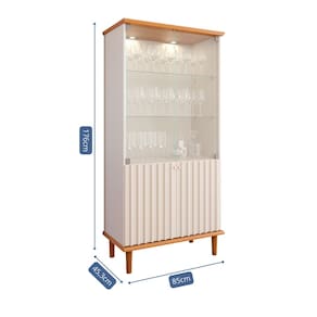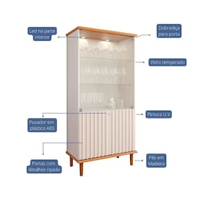 Características: Fabricado em MDF 4 Portas sendo 2 Portas com Vidros Prateleiras de Vidro Pintura UV Ripado LED Pés de madeira Puxadores em plástico ABS