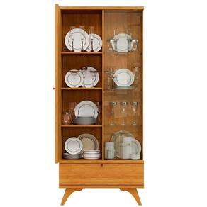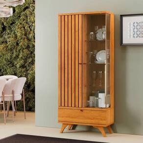 Uma Cristaleira moderna e sofisticada, um produto perfeito para embalezar seu ambiente. A Cristaleira possui 1 porta ripada e outro com porta de vidro, além das laterais e prateleiras com vidro também temperado em 4mm. Além de possui esses detalhes, a Cristaleira possui iluminação em LED, gavetas com corrediças telescópicas e lindos pés de Madeira Maciça. Esse móvel possui nas cores Naturalle e Off White com Naturalle.
