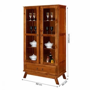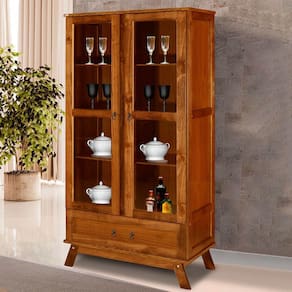 O(a) Cristaleira Roma 2 Portas 1 Gaveta Ypê - Rodmoveis é produzido em Madeira Maciça, Vidro e HDF na escala de brilho Fosco, e possui um grau de dificuldade de montagem: Médio.