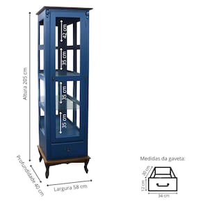 - 01 Cristaleira de Madeira 1 Porta 1 Gaveta 3 Prateleiras Lateral com Vidro Fundo de Espelho Pés Luiz XV