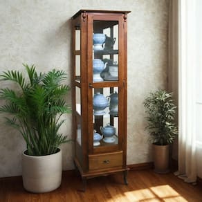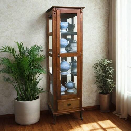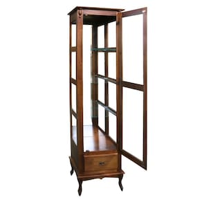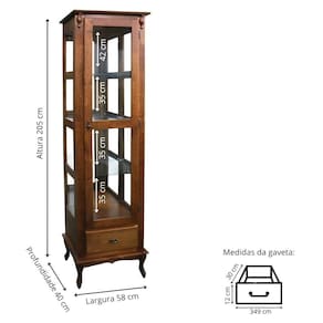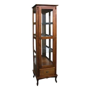 Cristaleira Rústica De Madeira 1 Porta 1 Gaveta E Pés Luiz Xv - Imbuia Glazer