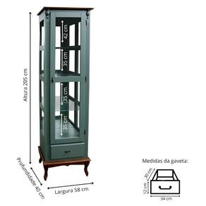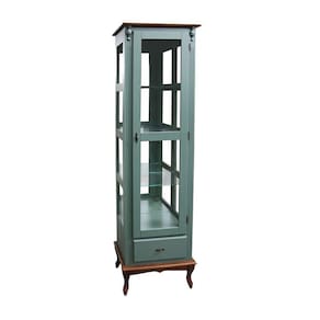 - 01 Cristaleira de Madeira 1 Porta 1 Gaveta 3 Prateleiras Lateral com Vidro Fundo de Espelho Pés Luiz XV