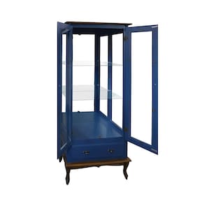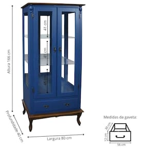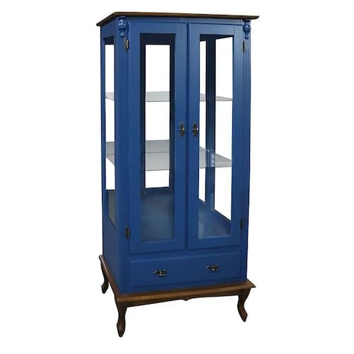 - 01 Cristaleira de Madeira 2 Portas 1 Gaveta 2 Prateleiras Lateral com Vidro Fundo com Espelho Pés Luiz XV