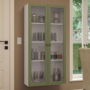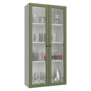 Esta versão foi projetada para instalação suspensa na parede, acompanhando um kit de fixação, que possibilita ajustar a altura da cristaleira conforme sua preferência, garantindo praticidade e otimização do espaço.