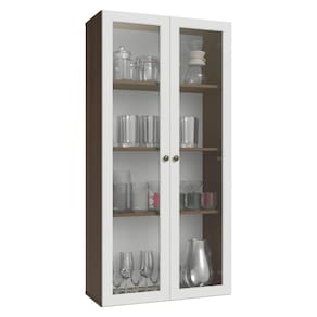 Esta versão foi projetada para instalação suspensa na parede, acompanhando um kit de fixação, que possibilita ajustar a altura da cristaleira conforme sua preferência, garantindo praticidade e otimização do espaço.