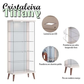 A cristaleira da linha Tifanny é uma peça elegante e funcional, perfeita para destacar suas coleções de cristais e louças. Possui duas portas e laterais em vidro, proporcionando uma visão clara e ampla do interior. Composta por quatro prateleiras em vidro oferece amplo espaço para organizar e exibir seus objetos. Além disso, conta com espelho, dando a sensação de profundidade ao ambiente. Equipada com uma luminária LED proporciona uma luz suave dando um toque de elegância. Os pés em madeira maciça oferecem estabilidade e aparência clássica. Produzido pela Imcal, é desenvolvida em 100% MDP com materiais de alta qualidade garantindo mais durabilidade e prolongando a vida útil do móvel. Combinando praticidade com estilo, a cristaleira é uma escolha sofisticada para complementar seu ambiente. Confira e garanta o seu!