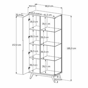 Produzida em MDF com pés de madeira maciça, possui 2 portas (sendo 1 de vidro 4 mm) e 6 prateleiras para organizar e expor suas taças e objetos com elegância.