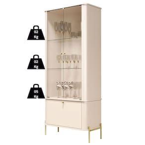 Seu interior conta com prateleiras internas bem distribuídas, ideais para acomodar taças, louças, bebidas e objetos decorativos com excelente visibilidade e organização.