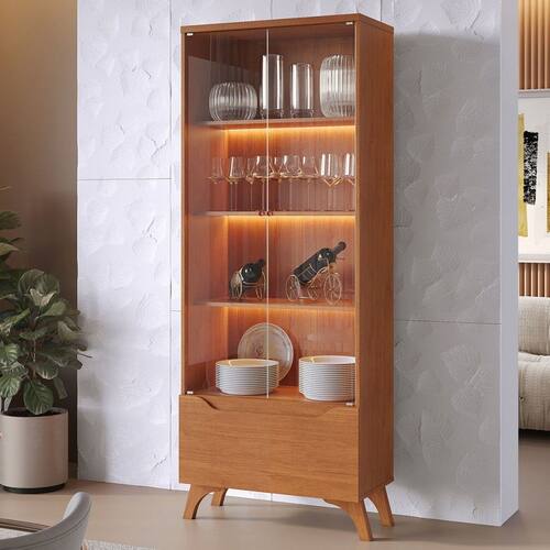 O(a) Cristalera Grécia New 2 Portas 1 Gaveta com Vidro e Led Naturallle - Mavaular é produzido em MDF na escala de brilho Semi-Brilho, e possui um grau de dificuldade de montagem: Médio.