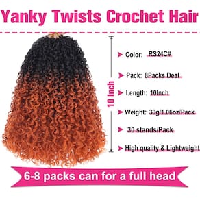 Unionbeauty Cabelo de crochê Yanky torcido pré-torcido 25,5 cm, 8 pacotes, pré-enrolado, curto, passion, crochê, tranças, tranças de crochê sintético, extensões de cabelo RS24C# - Passion Twist Crochet Hair Material: nosso cabelo de crochê Yanky Twist pré-torcido é feito de fibra sintética de boa qualidade, 100% feita à mão. O material é seguro, a qualidade pode ser garantida. Além disso, alguns cuidados simples após a instalação do cabelo farão com que o cabelo dure muito tempo, e nosso cabelo de crochê Passion Twist é muito durável. - Característica do cabelo de crochê torcido da paixão: cabelo de crochê torcido torcido pré-torcido e pré-torcido, textura macia, sem emaranhados, sem odor, zero queda, leve, aparência muito natural. O cabelo é leve, não causará danos ao seu cabelo autêntico, não aumentará o peso do seu cabelo. Ao mesmo tempo, nosso cabelo de crochê Passion Twist é fofo e cheio, deixará seu cabelo mais bonito. - Cabelo de crochê Yanky Twist Uso: O cabelo de crochê torcido Yanky tem um design pré-laço separado, por isso é fácil de instalar e usar rapidamente, pode economizar tempo e dinheiro, para que você não perca muito tempo para obter o cabelo elegante e bonito que deseja. - Especificações do cabelo de crochê Yanky Twist pré-torcido: nosso cabelo de crochê Passion Twist tem 20 cm, há 8 bolsas/lotes, 30 fios/bolsa, um total de 240 fios, o suficiente para você completar um penteado completo e fofo, e temos muitas opções de cores, você pode escolher sua cor favorita para completar sua combinação de moda. Acredite que seu charme será mais perceptível após a conclusão e, assim, receba mais elogios. - Yanky Twist Crochet Hair Ocasiões: O cabelo de crochê Yanky Twist pode ser utilizado para festas de amigos, uso diário, sair para viagens, casamentos, boates, cerimônias de formatura, presentes de Dia das Mães e outras ocasiões.