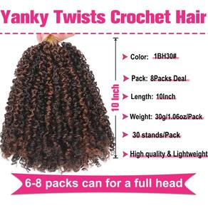Unionbeauty Cabelo de crochê Yanky torcido pré-torcido de 25,4 cm, pacote com 30 fios/PCS Micro Passion Twists Hair Pre-looped Spring Twists Hair com extensões de cabelo sintético de crochê marrom - Passion Twist Crochet Hair Material: nosso cabelo de crochê Yanky Twist pré-torcido é feito de fibra sintética de boa qualidade, 100% feita à mão. O material é seguro, a qualidade pode ser garantida. Além disso, alguns cuidados simples após a instalação do cabelo farão com que o cabelo dure muito tempo, e nosso cabelo de crochê Passion Twist é muito durável. - Característica do cabelo de crochê torcido da paixão: cabelo de crochê torcido torcido pré-torcido e pré-torcido, textura macia, sem emaranhados, sem odor, zero queda, leve, aparência muito natural. O cabelo é leve, não causará danos ao seu cabelo autêntico, não aumentará o peso do seu cabelo. Ao mesmo tempo, nosso cabelo de crochê Passion Twist é fofo e cheio, deixará seu cabelo mais bonito. - Cabelo de crochê Yanky Twist Uso: O cabelo de crochê torcido Yanky tem um design pré-laço separado, por isso é fácil de instalar e usar rapidamente, pode economizar tempo e dinheiro, para que você não perca muito tempo para obter o cabelo elegante e bonito que deseja. - Especificações do cabelo de crochê Yanky Twist pré-torcido: nosso cabelo de crochê Passion Twist tem 20 cm, há 8 bolsas/lotes, 30 fios/bolsa, um total de 240 fios, o suficiente para você completar um penteado completo e fofo, e temos muitas opções de cores, você pode escolher sua cor favorita para completar sua combinação de moda. Acredite que seu charme será mais perceptível após a conclusão e, assim, receba mais elogios. - Yanky Twist Crochet Hair Ocasiões: O cabelo de crochê Yanky Twist pode ser utilizado para festas de amigos, uso diário, sair para viagens, casamentos, boates, cerimônias de formatura, presentes de Dia das Mães e outras ocasiões.