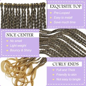 Especificação do cabelo: 1. Produto: Cabelo trançado encaracolado francês pré-torcido e pré-enrolado, tranças de crochê onduladas francesas, tranças de caixa de deusa pré-trançadas, cabelo de crochê para mulheres e crianças negras, tranças de crochê boêmio com pontas encaracoladas, tranças de caixa de crochê, cabelo cacheado pré-enrolado. 2. Material do cabelo: cabelo trançado de cachos franceses boêmios é feito de 100% de alta qualidade, baixa temperatura, configuração de água quente, fibra sintética. Essa é a melhor fibra sintética, que pode dar ao seu penteado uma aparência natural. 3. Tamanho do cabelo: 30,5 cm, 35,5 cm, 45,7 cm e 56 cm. 4. Cor do cabelo: 1B#(preto natural), T27# (ombre néctar das flores loiro), T30# (ombre marrom), 350# (vermelho cobre), TBug#(ombre vermelho bordô), cinza (cinza ombre), 1B/300 /nº 27 (marrom ombre a loiro), 1B/30/613 (ombre marrom a loiro), P27/613#(loiro néctar das flores misturado com loiro), 1B/33/30#(ombre marrom escuro a marrom claro). 4. Vantagem do cabelo: leve, super macio, sem coceira, sem queda, sem emaranhamento, sem cheiro, durável e duradouro. Fácil de instalar, tranças de crochê pré-enroladas e pré-torcidas, para que você possa instalá-lo diretamente sozinho, economize muito tempo e dinheiro, especialmente para iniciantes. - Cabelo de crochê atualizado: as tranças de crochê francesas são feitas de tranças de crochê com cachos franceses soltos, baseados em cabelo trançado de cachos franceses, novo cabelo de crochê moderno para mulheres negras, toque parece cabelo humano crochê - Rápido de instalar, adequado para iniciantes: o cabelo de crochê francês é diferente dos cabelos trançados franceses, a instalação do cabelo trançado de cachos franceses leva muito tempo, fácil de emaranhar; as tranças de crochê francesas pré-enroladas economizam tempo e dinheiro, mais fáceis e naturais - Material premium, fofo, de longa duração: as tranças de cabelo de crochê são feitas de fibra de qualidade, feitas à mão, leves e volumosas, macias, sem cheiro, sem emaranhado e duradouras, tocadas como cabelo humano - Escolha ideal para qualquer ocasião e idade: extensões de cabelo de crochê trançadas francesas para diferentes idades, várias ocasiões, como vida diária, trabalho, escola, encontro, festa, cosplay, casamento, viagem, férias etc - Pacote: Tranças francesas de crochê de cabelo trançado, 7 pacotes/lote, 20 fios/pacote, 140 fios no total, o suficiente para uma cabeça inteira. Vem com 1 agulha de crochê e alguns anéis coloridos; use o cabelo trançado francês pré-enrolado com confiança, você receberá muitos elogios por seus lindos visuais.