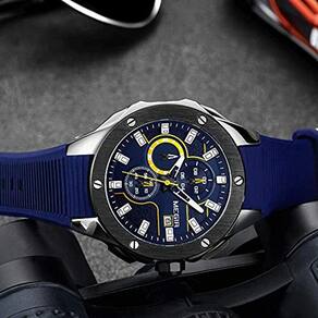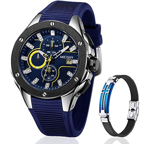 Relógio masculino de quartzo luminoso esportivo MEGIR Army Military Luminous Chronograph com elegante relógio de silicone azul para homens
