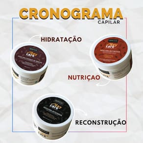 Conograma capilar - day care / Resultados: cabelos fortes, saudáveis e recuperação dos fios.Indicado para: todos os tipos de cabelosAtivos: castanha do pará, manteiga de karité, aminoácidos, ácido hialurônico, colágeno & elastina complexados, proteínas da quinoa e arrozMáscara choque de brilho - day care ilumina hidratação Ativos: oléo de marula, pro vitamina b5 e semi de lino.Modo de uso: após a aplicação do condicionador, aplique o day care ilumina máscara choque de brilho da altura da orelha às pontas. Massageie enluvando mecha por mecha e deixe agir por 3 minutos. Enxágue.Composição: aqua, cetearyl alcohol, cetrimonium chloride, cyclomethicone and dimethicone, glycerin, behentrimonium methosulfate and cetearyl alcohol, parafinum liquidum, stearamidopropil, deimthilamine, parfum, sodium pca, arginine, astpartic acid, pca, glycine, alanine, serine, valine, isoleucine, histidine, phenylamine, shea butter buthrospermim parkii guar, hydroxyoropyltrimonium, chloride citric acis, methylchloroisothiazolinone and methylisothiazolinone, linum usitatissimum linseed seed extractMáscara intensiva - day care nutrifique nutrição Ativos: castanha do pará, manteiga de karité e aminoácidos.Modo de uso: aplique a day care nutrifique máscara intensiva sobre os cabelos limpos e úmidos distribuindo uniformemente o produto, massageando bem. Deixe agir por 5 minutos e enxágue completamente.Composição: cetearyl alcohol cyclomethicone and dimethiconol cetrimonium chloride paraffinum liquidum - óleo mineral stearamidorpopyldimethilamine behentrimonium methosulfate and cetearyl alcohol citric acid petrolatum-vaselina sólida shea butter butyrospermum parki aminoácidos complex theobroma grandiflorum seed butter atrocarium murumuru butter olea europaea seed butter disodium edta mistura de isotiazolinonas.Máscara intensiva - day care re-intense reconstrução Ativos: ácido hialurônico, colágeno & elastina complexados e proteínas da quinoa e do arroz.Modo de uso: aplique a day care re-intense máscara intensiva sobre os cabelos limpos e úmidos distribuindo uniformemente o produto, massageando bem. Deixe agir por 5 minutos e enxágue completamente.Composição: aqua, disodium edta, cetrimonium chloride, dmdm hydantoin, parfum, methylchloroisothiazolinone, methylisothiazolinone, hydroxypropyl starch phosphate, octadecyl-di-t-butyl-4-hydroxyhydrocinnamate, paraffinum liquidum, stearamidopropyl dimethylamine, lactic acid, cetearyl alcohol, cetyl alcohol, hydrolyzed rice protein, hydrolyzed elastin, hydrolyzed collagen, hyadluronic acid, chenopodium quinoa seed extract, alpha isomethyl lonone, hexyl cinnamal, linalool.Observação: enviaremos o nosso cronograma biofios, com a ordem de dias e qual máscara usar em cada um deles, para auxiliar você no tratamento./ Precauções gerais: manter fora do alcance das crianças. Evitar contato com o olhos. Proteger da luz solar e do calor excessivo. Não ingerir. Em caso em contato com os olhos, lavar com água abundante. Em caso de irritação, suspenda o uso. Uso externo.Kit - cronograma capilar biofios Hidratação 300gNutrição 300gReconstrução 300g
