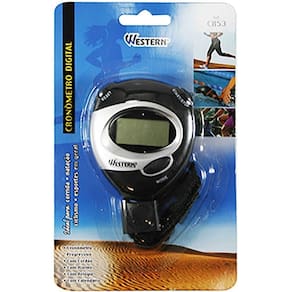 Cronômetro progressivo com cordão, alarme, relógio e calendário.