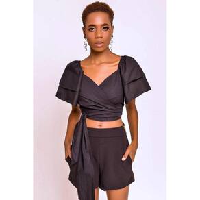 Cropped de Tricoline Camila, possui modelo justo, manga abaloada, decote em V, elástico nas costas. Modelo de traspassa e amarrar. O top é a peça curinga que todo mundo ama. E quando o assunto é balada, fica bem fácil pensar e escolher o look que vai usar na produção. Desde o look mais descolado, até o sofisticado e o mais sexy. Com jeans, saia longa ou curta, com estampas ou neutro, ele combina e agrega mais valor nas festividades. Observação: a cor das peças nas fotos pode variar ligeiramente de acordo com o seu monitor ou telefone e por serem tiradas em estúdio ou com luz natural. Código do produto: 00162030015 Marca: Khalli