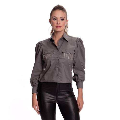 A nossa querida Camisaria Teodoro apresenta sua nova e luxuosa linha de camisas femininas. Conheçam este lindo lançamento "Teresa Teodoro" e se apaixonem!Este modelo é confeccionado em tricoline acetinado de algodão. Modelagem mais soltinha com comprimento de Cropped e manga 7/8 bufante. Bolsos frontais quadrados com tampa. Franja em metal e Strass na tampa dos bolsos. Fechamento frontal com botões encapados no mesmo tecido da peça. Veste bem com calça para looks mais clássicos e acompanha também saia e short para um look mais romântico e casual. Peça muito versátil e chique.