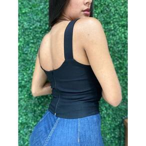 Detalhe: Cropped Com Abertura em V Alças Frontais e Zíper Atrás.
