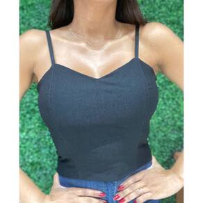 Cropped Slim Básico Alça com Regulagem Preto