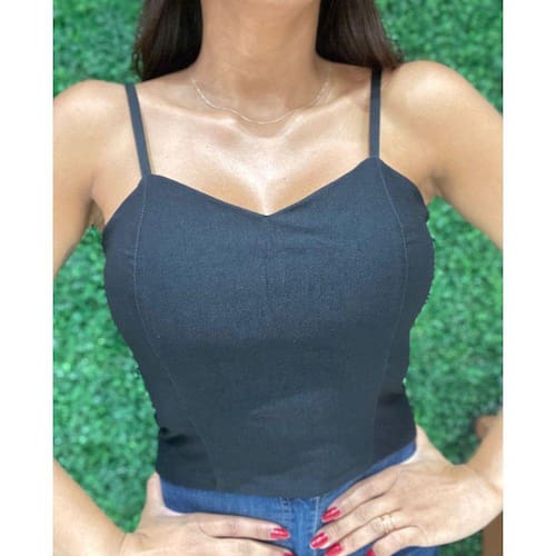 Detalhe: Cropped Com Alças Finas de Regulagem Com Bojo e Zíper Atrás.