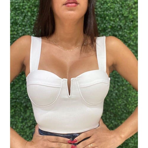 Detalhe: Cropped Com Abertura em V Alças Frontais Com Bojo e Zíper Atrás.