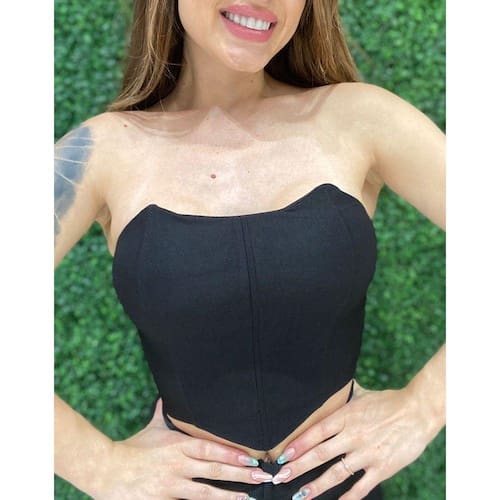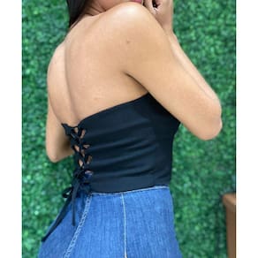 Detalhe: Cropped Com Estrutura Corselet Com Bojo e Amarração Trançada Atrás