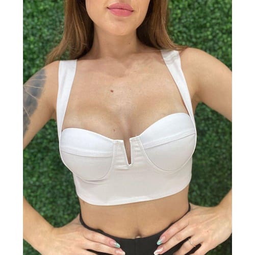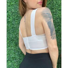 Detalhe: Cropped Com Abertura em V e Alças Laterais com Bojo e Zíper atrás.