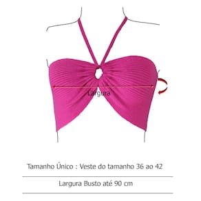 O top possui medidas padrão de tamanho único. Ideal para ser combinado com peças de cintura alta, saias, shorts ou calças. Sua versatilidade permite criar looks casuais ou mais elaborados, garantindo sempre um toque de estilo único.