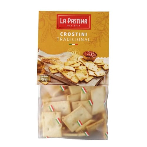 O Crostini La Pastina Tradicional possui sabor mais neutro, sendo excelente para acompanhar queijos e geléias, sopas, patês, antepastos, bruschettas ou simplesmente sozinho, como um snack. Ean: 7896196061474