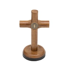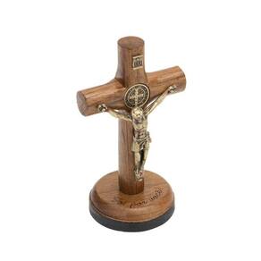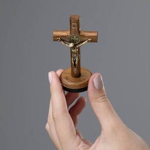 Produto confeccionado em madeira com medalha de São Bento em Ouro Velho. As chagas de Cristo em resina vermelha, trazendo um acabamento fino e real ao produto.