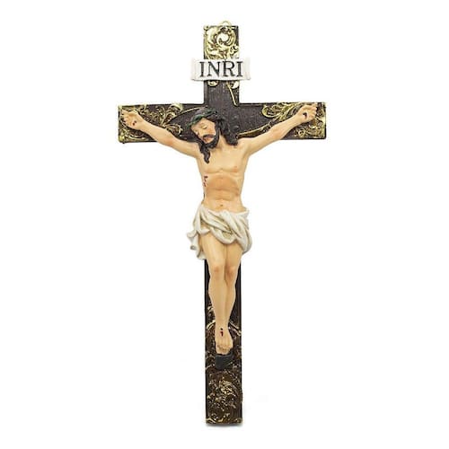 Crucifixo de Parede Resina 25 cm A Cruz simboliza a glorificação de Cristo, um sinal de entrega de amor que possibilitou a nossa salvação. Dimensões: altura: 23 cm - Largura: 12 cm - Profundidade:4 cm Dimensões aproximadas do produto. Produto pintado a mão, podendo sofrer variações de cores. Marca: Não Informado Ean: 6988100786151