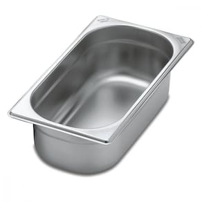Totalmente feita de aço inox, por isso não solta nenhum resíduo nos alimentos, mantendo-os saudáveis. Altamente durável mantém suas características , preservando a beleza, a higiene e a durabilidade do material. Cuba com paredes laterais com rebaixamento interno para facilitar o empilhamento. Cantos internos arredondados e mais amplos para ajudar na limpeza e no recolhimento dos alimentos. A linha de cubas gastronômicas Tramontina está de acordo com todos os módulos dimensionais descritos na norma europeia EN 631.Material: aço inox.Capacidade: 5,42l.Profundidade: 150mm.Aço 304 Sem alças. Que tal aproveitar esse dia para servir uma gostosa lasanha de frango ou uma deliciosa massa ao pesto no seu restaurante? A Cuba Tramontina 1/3 em Aço Inox sem Alças Profundidade 150 mm é a escolha certa para essa ocasião. Além de contar com uma fabricação totalmente em aço inox, essa cuba vai deixar mais prático o processo de limpeza, seus cantos arredondados facilitam o alcance da esponja em todos os ângulos, deixando a sua cuba limpa mais facilmente.