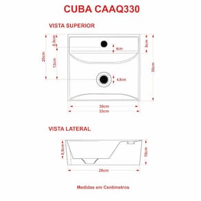 Cor: Colorida Marca: Compace Modelo: CDQD330 Linha: Conect Formato: Angular Quadrada Tipo de Cuba: Apoio Material: Mármore Sintético Acabamento: Hard Lacca PU Escala de Brilho: Brilho Possui Ladrão: Não Possui Furação para Torneira: Sim Diâmetro do Furo para Torneira: (32mm) - DN 32 Diâmetro do Furo para Válvula: (40mm) - DN 40 Comprimento: 33cm Largura: 30cm Altura: 10cm Peso Líq.: 4,6Kg Recomendações de Uso, Manutenção e Limpeza: Utilize flanela seca ou pano macio, levemente umedecido com água. Evite contato com produtos químicos e abrasivos (solventes, thinner, acetona etc) e não utilize nenhum tipo de esponja de aço. Para maior brilho, recomendamos a utilização de cera automotiva n 2. Necessita de Montagem: Sim / Acompanha Manual de MontagemComplexidade da Montagem: Média: pode ser montado por mais de uma pessoa e/ou necessite de maior conhecimento para montagem.Garantia: 6 meses