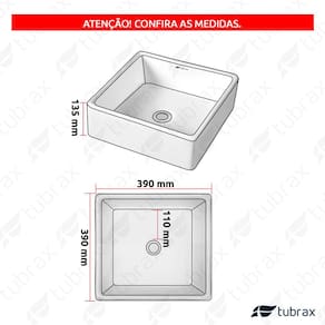 - Dimensão (C x L x A): 39 cm x 39 cm x 13,5 cm (dimensões externas)