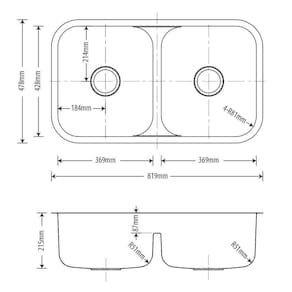 Tamanho externo da cuba: 819x478mm