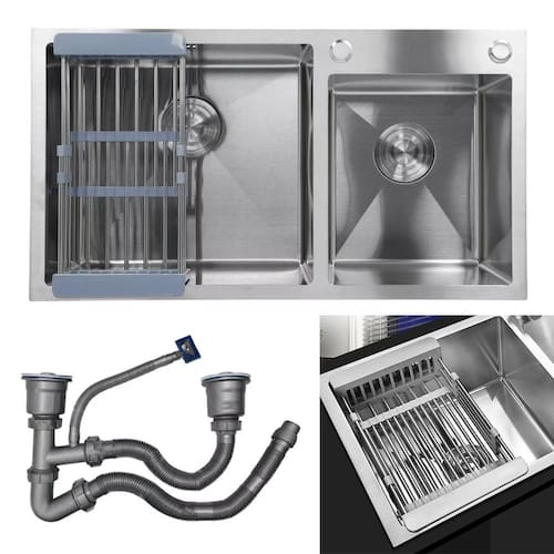 A Cuba de cozinha gourmet dupla produzida em Aço Inox 201, que garante durabilidade e resistência. Equipada com sistema anti ruído, que garante uma experiência tranquila enquanto você prepara suas refeições favoritas.